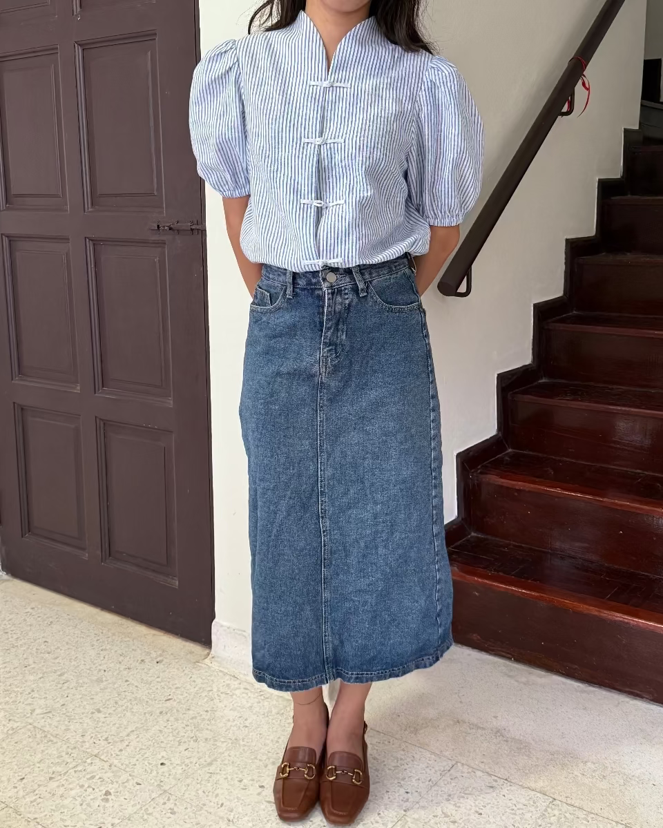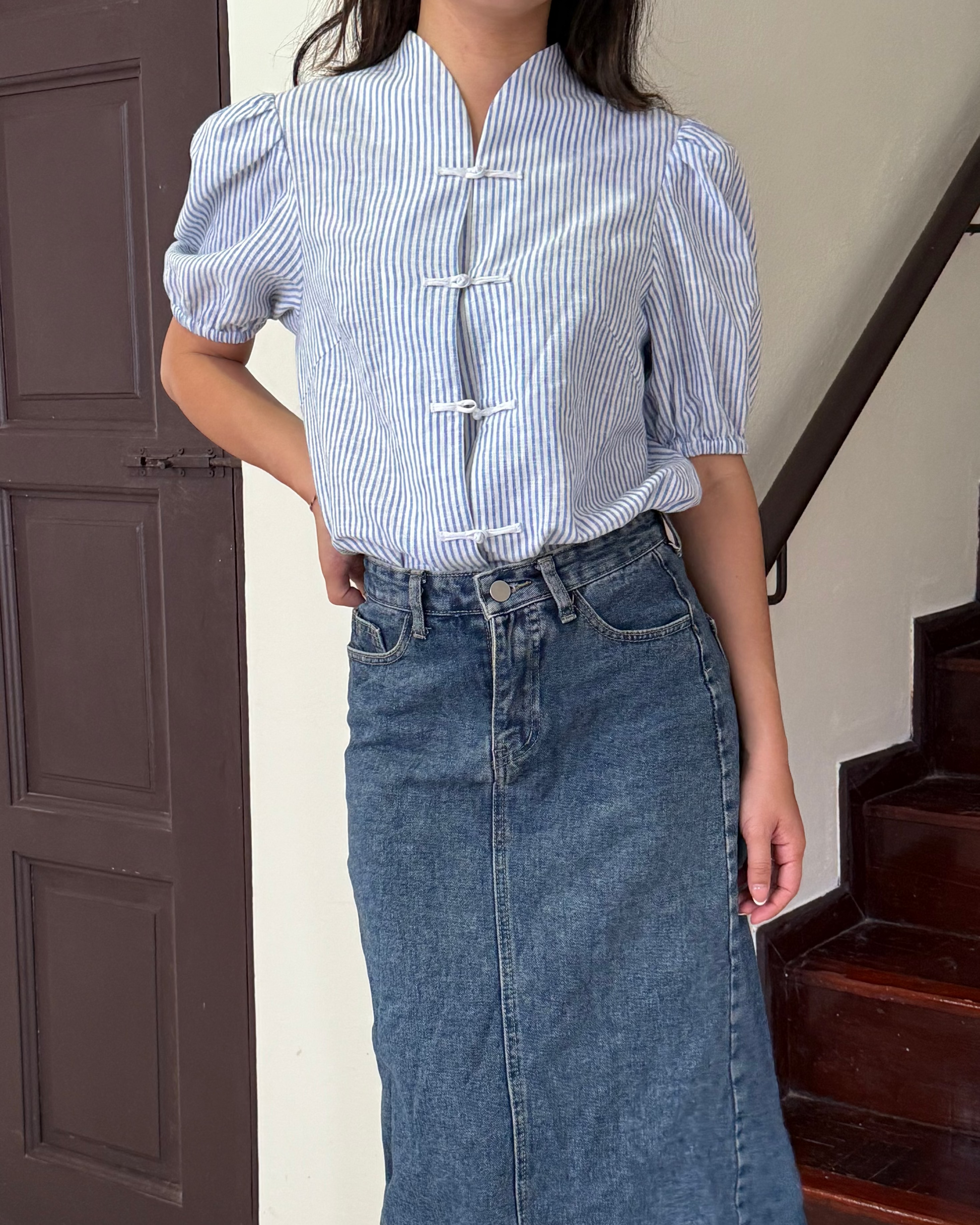 Made from light blue striped cotton, this blouse is lightweight, breathable, and incredibly comfortable, perfect for staying cool in our Malaysian weather. The soft fabric feels gentle on the skin, making it an easy piece you’ll want to wear all day.
