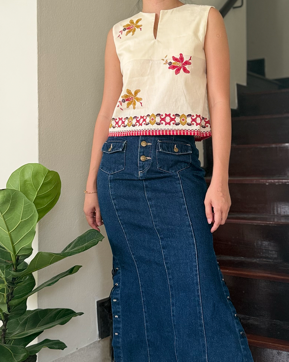 The top is sleeveless, lightweight, and easy to style — perfect for warm weather or for layering under a jacket or outerwear. The skirt’s relaxed cut features pockets, allows for freedom of movement, making it just as comfortable.
